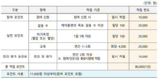 국민의 현재 건강상태를 알려주고, 개인이 스스로 실천한 건강생활 노력 및 건강개선 결과에 따라 포인트를 지급하는 시범사업입니다.