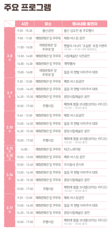 축제장소 : 광양시 다압면 매화마을 일원